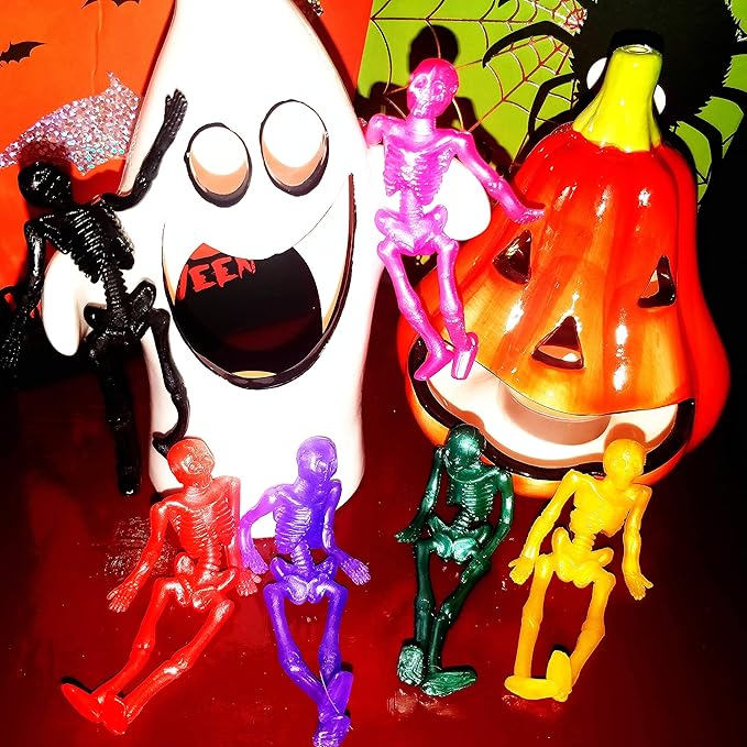 - They are perfect for fill up the Easter baskets, Party Favors, Valentine's Day class exchange, Birthday Parties, Camping Trips, Halloween trick or treats, Glow Party, School Classroom Rewards, Treasure Box, Carnival Prizes, Pinata Toys Filler, Beach Parties, CookOut and More. These Rubber Skeletons are great gag toys to play pranks on people with! The detail put into these stretchy toys makes them look scary as Halloween decorations or on April fool's day.