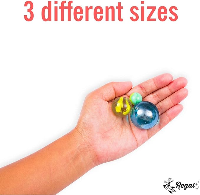 Regal Games 160 Count Traditional Glass Marbles with a Storage Tin, 3 Sizes, Variety of Patterns