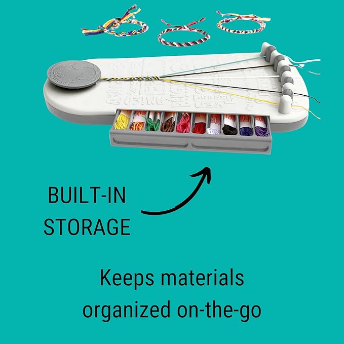 - ENHANCED FUNCTIONAL DESIGN KEEPS CRAFTING SIMPLE - The clip and slots hold threads in place for easy crafting. The bracelet maker's clever, patented design conceals a secret storage compartment to keep all your threads safe, organized, and tangle-free.