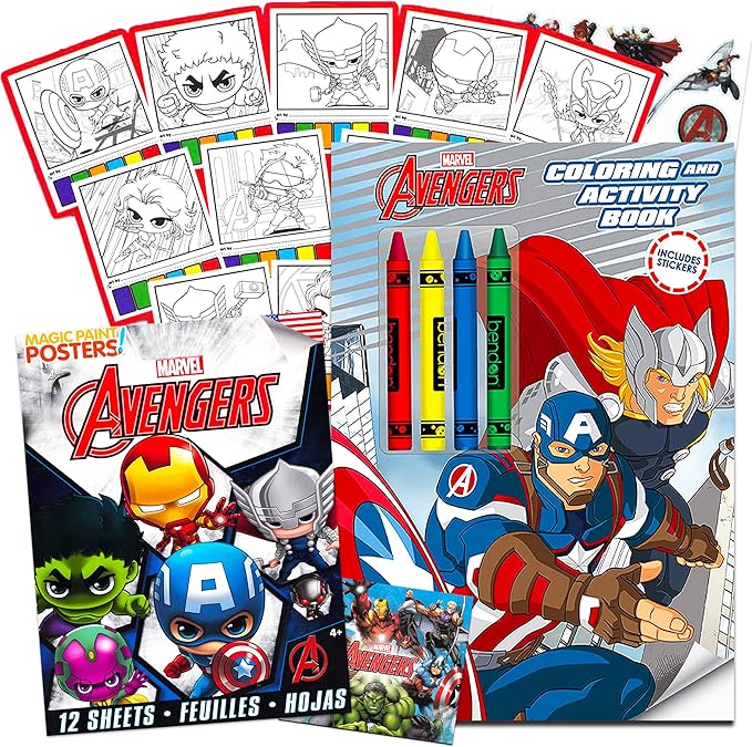 - Marvel Avengers Coloring and Painting Packs for Kids Toddlers Bundle ~ Avengers Coloring Book and Painting Posters with Avengers Stickers (Avengers Party Supplies)