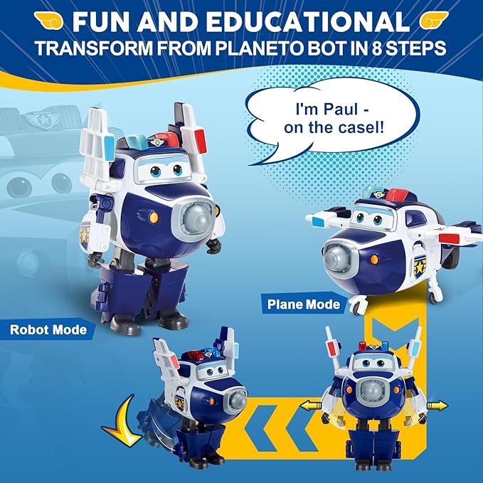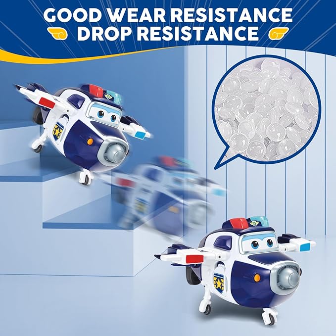 - High-quality Material - The police plane toy body of the Paul is made of high-quality environmentally friendly ABS material, which has good wear resistance & drops resistance. Even if the kids slide Supercharged Paul from a one-meter-high table to the ground, Paul's body will not be damaged.