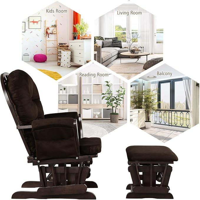 - [Multifunctional Glider & Ottoman Set] This glider and ottoman set can be used not only during pregnancy and nursing. It can also be used as a regular rocking chair or a comfortable spot to relax, read, or watch TV. It can be placed in the living room or bedroom, serving as a comfortable seating option for anyone in the family. A variety of colors are available to match the overall aesthetic of the room.