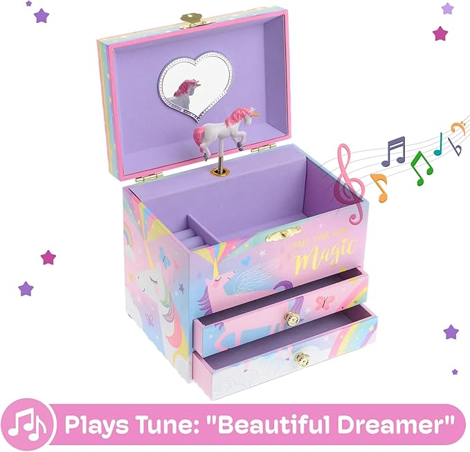 - Magical Musical Feature: Wind up the unicorn jewelry box to watch the unicorn twirl gracefully to the enchanting tune of Beautiful Dreamer, adding a touch of magic to your child's daily routine
