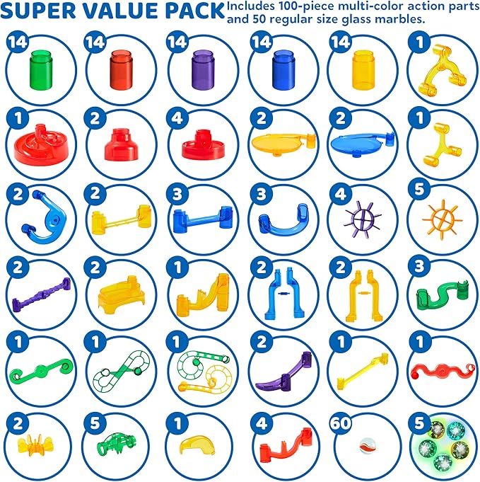 - 207 Pcs premium marble run set with transparent parts, endless fun for your child to watch marbles run along tracks.