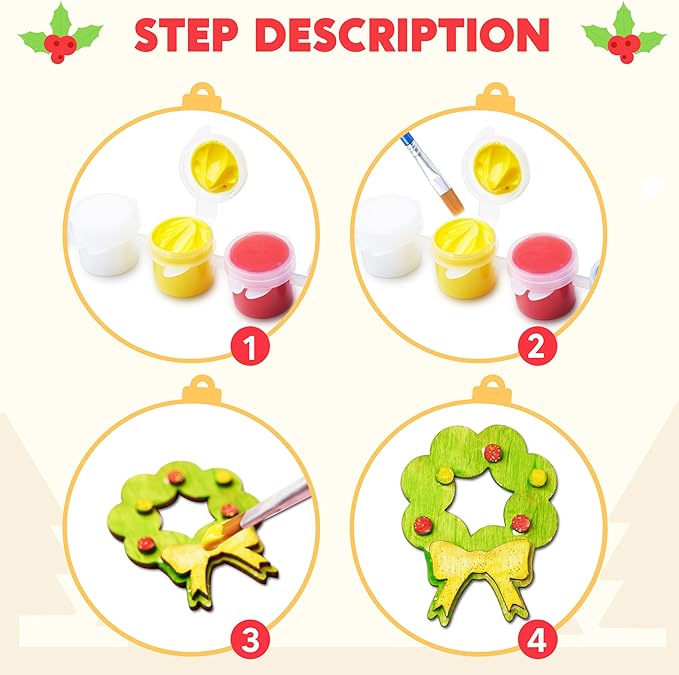 JOYIN 14 Christmas Wooden Magnet Creativity Arts & Crafts Painting Kit Decorate Your Own for Kids Paint Gift, Birthday Parties and Family Crafts, Holiday Stuffers(Age 8+)