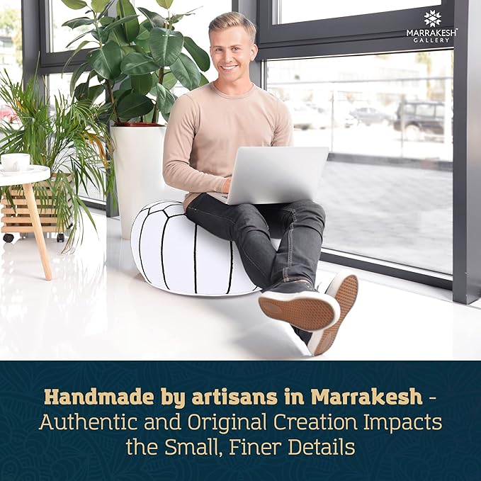 - Handcrafted by Artisans in Marrakesh - Made from 100% genuine soft leather, this Round Leather Cover pouf ottoman features exquisitely detailed, hand-stitched embroidery with a unique design down to the finest details