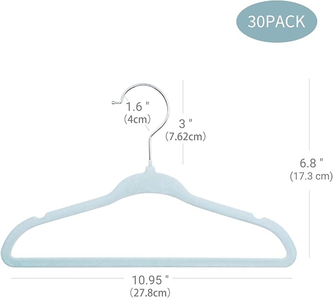 - [Super Value Set]: Dimensions: L 10.95'' x W 0.2'' x H 6.8''. 30 pack of baby clothes hangers are enough for you to accommodate your baby's clothes, and these hangers would be a high end look in your baby's wardrobe.