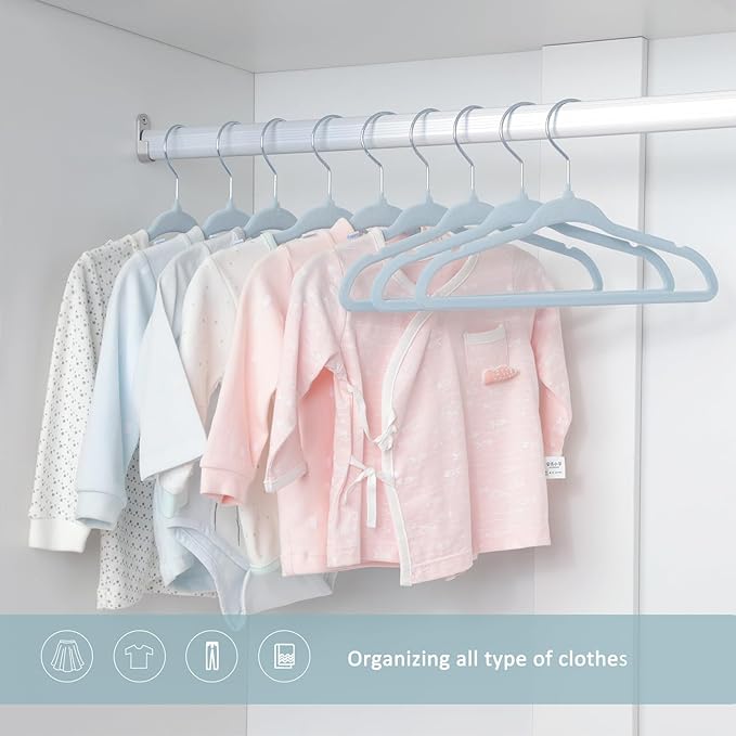 - [Velvet Material]: Velvet covers the surface of the kids hangers, helping clothes keep from getting wrinkled. A bonus it also feels so soft to the touch.