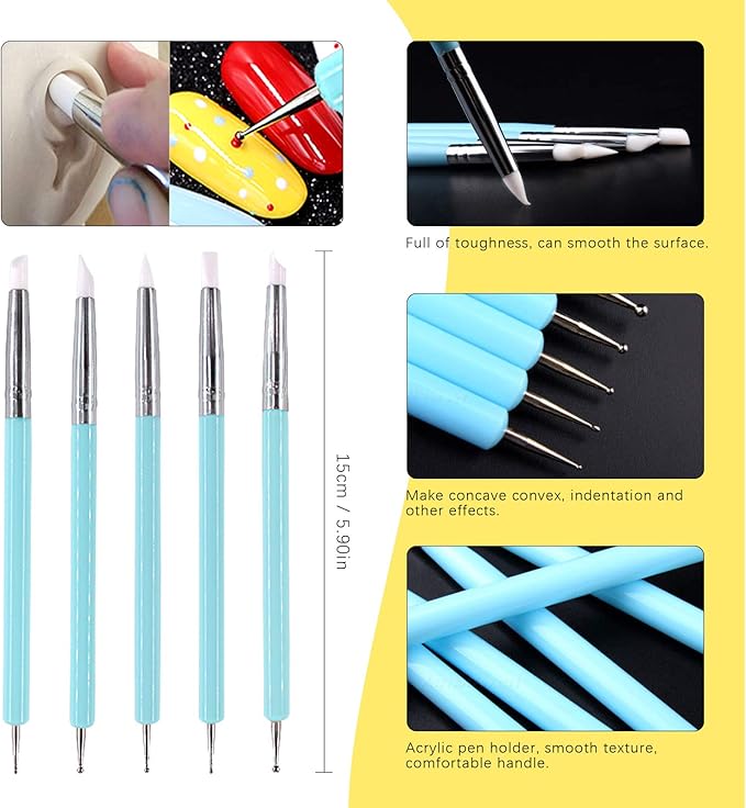- ❤ 5Pcs Dual-ended Design Pottery Tools ------- With dotting tools and rubber tip pens, ideal for making dots, blending seams in clay, painting on rocks and making paper flowers;Angle chisel, flat chisel, cup chisel, cup round shape, ideal for color shaping, blending, drawing, fine detail, touch-up work and remove the fingerprints. More convenient to use and carry.