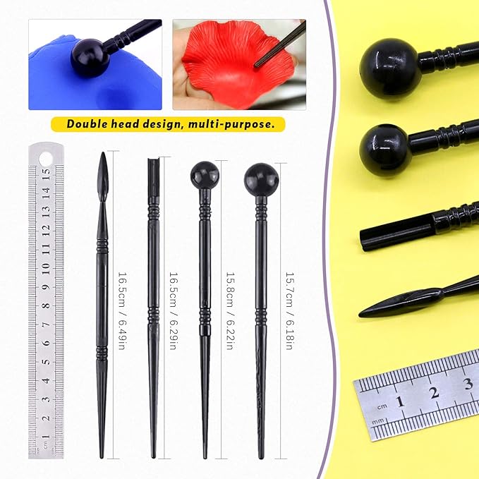 - ❤ 4Pcs Plastic Modeling Tools ----- Suitable for making dots, smooth lines in clay, sculpture, make paper flowers or embossing on soft paper, also suitable for cake decoration and fondant flower mold.