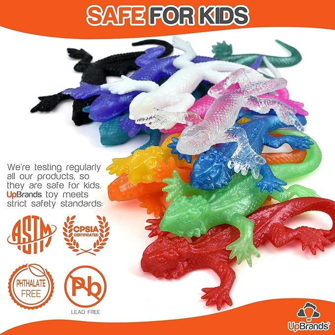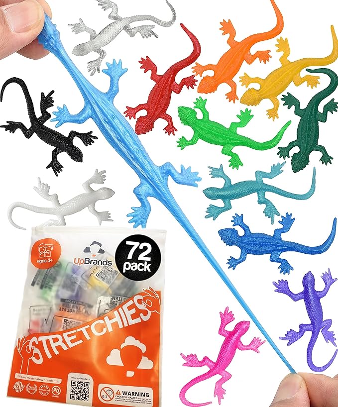 - Great sensory fidget toys for Easter Basket Stuffers. The lizards are individually wrapped and will easily fit in plastic Easter Eggs used for Easter hunt. UpBrands Stretchy Lizards Toys 72 pack - an excellent kit for birthday party favors for kids. Children will play with these stretchy rubber lizards toys and will love to share them in goody bag stuffers.