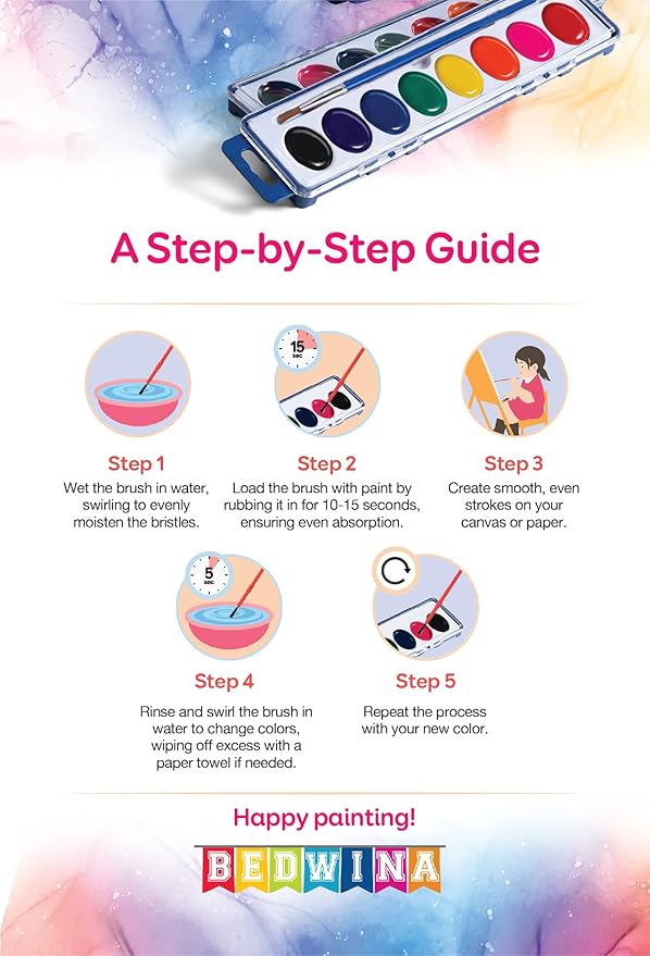 - HIGH QUALITY & NON-TOXIC: Bedwina Mini Paint Sets are high quality and non-toxic paint for toddlers and kids. These mini watercolor paint sets are also washable and virtually mess-free.