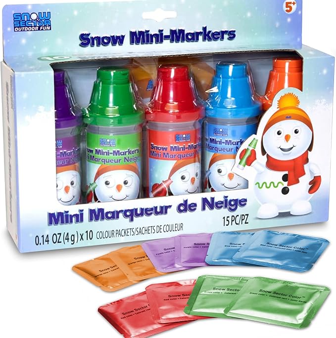 - Colorful Snow Markers - Provide hours of fun in the fluffy cold snow with 5 colors of snow markers. Perfect gift for the creative type. Use the 10 snow paint packets to customize your snow fort or color your snowballs to make outdoor winter games even more interesting!