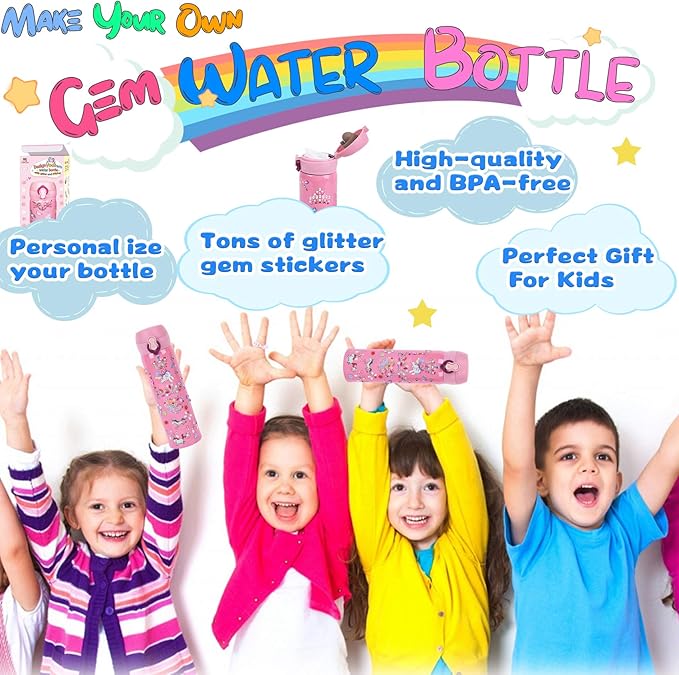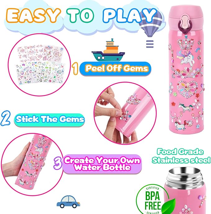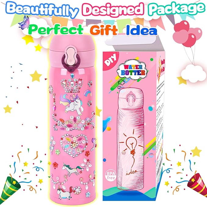 - 【UNIQUE WATER BOTTLE】Foster Creativity with our water bottle craft kit,simply peel the gems from the sticker, apply them to make a unique water bottle, easy & fun for kids at a young age as well
