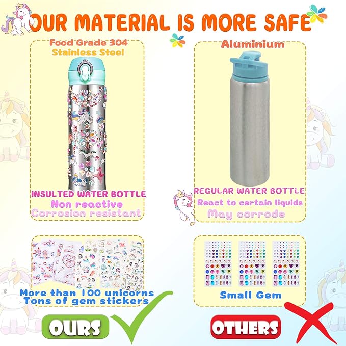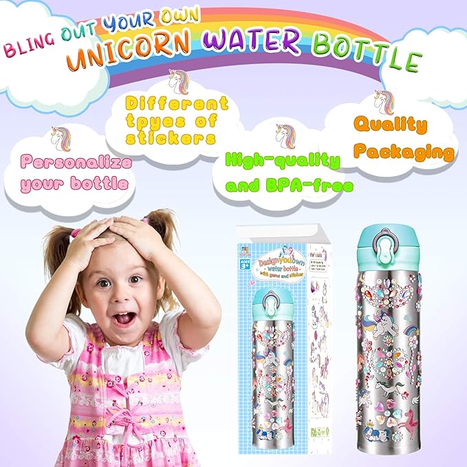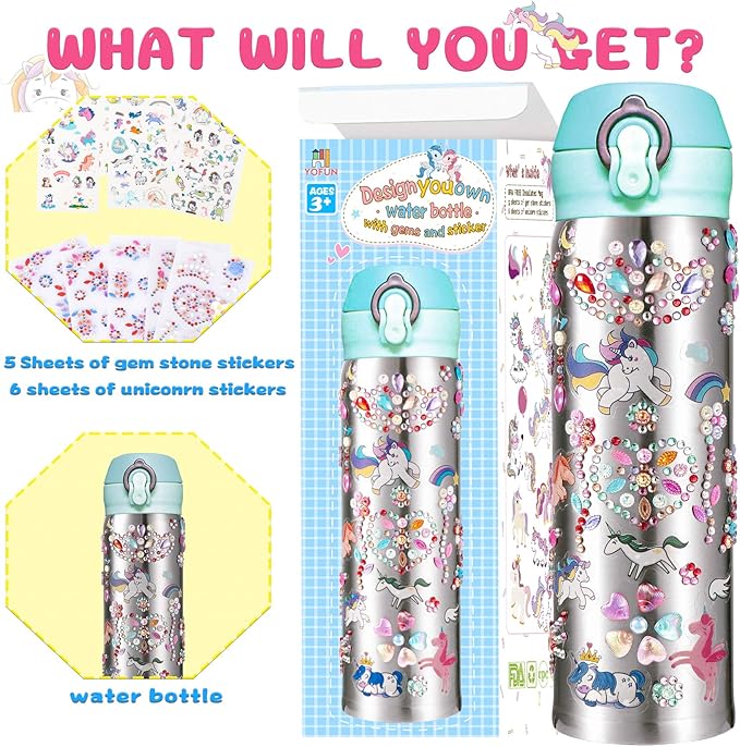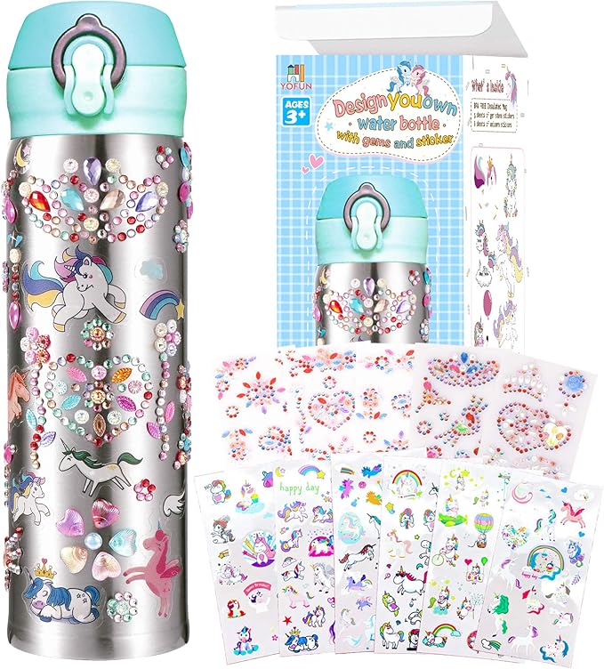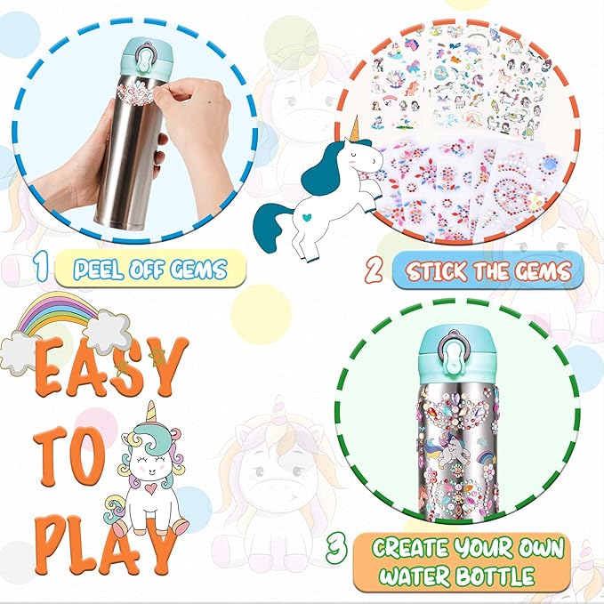 - 【DECORATE WATER BOTTLE】Foster Creativity with our water bottle craft kit, simply peel the gems from the sticker, apply them to make a unique water bottle, easy & fun for kids at a young age as well