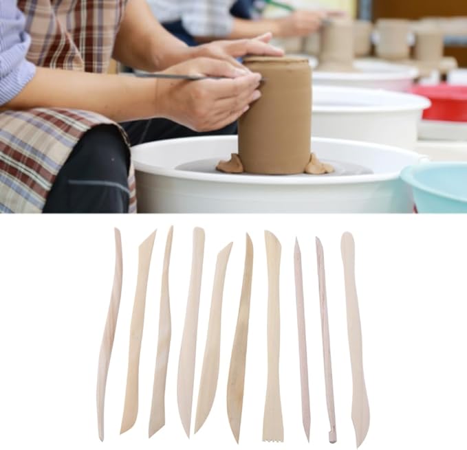 10pcs Clay Tools Set, Wood Polymer Modeling Tools DIY Wooden Clay Sculpting Tools Kits for Beginners Professionals Kids Pottery Sculpture