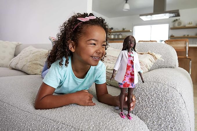 Barbie Careers Fashion Doll & Accessory, Doctor with Curvy Body Type & Brunette Hair Wearing Coat & Flats with Stethoscope