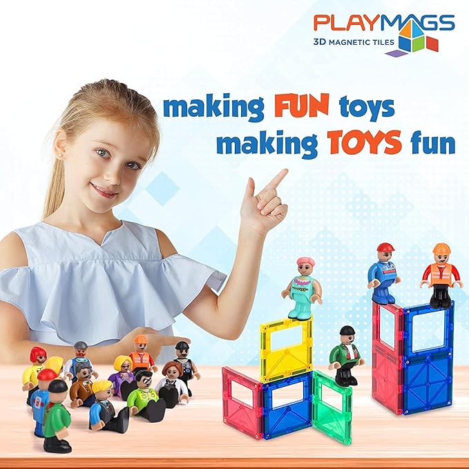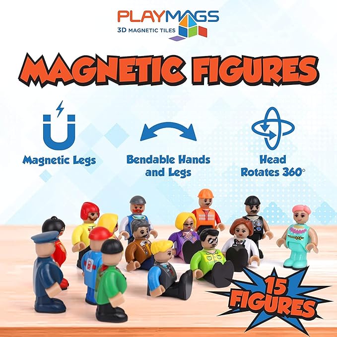 Playmags Magnetic Figures Community Set of 15 Pieces - Play People Perfect for Magnetic Tiles Building Blocks - STEM Learning Toys Children – Magnet Tiles Expansion Accessories Pack (Styles May Vary)