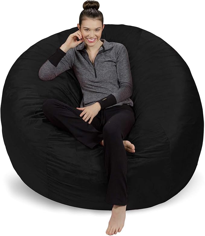 Sofa Sack Bean Bag Chair Cover Only, for Adults and Kids, Without Filling Comfy Fluffy Round or Oval Beanbag Chair Cover Replacement, Lazy Sofa Cover for Reading Chair or Floor Chair, 6-Feet, Black