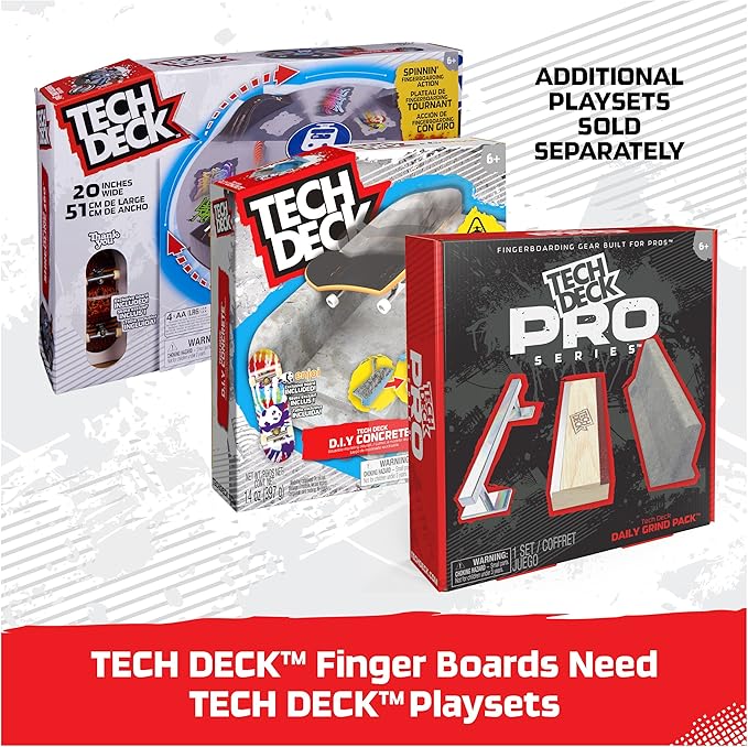 - BECOME A TECH DECK PRO: Grind your new boards on Tech Deck fingerboard obstacles and playsets like the expansive X-Connect World. Shred and ollie on the X-Connect Shredline and Sk8 Garage Skatepark (each sold separately) for new ways to play and progress.