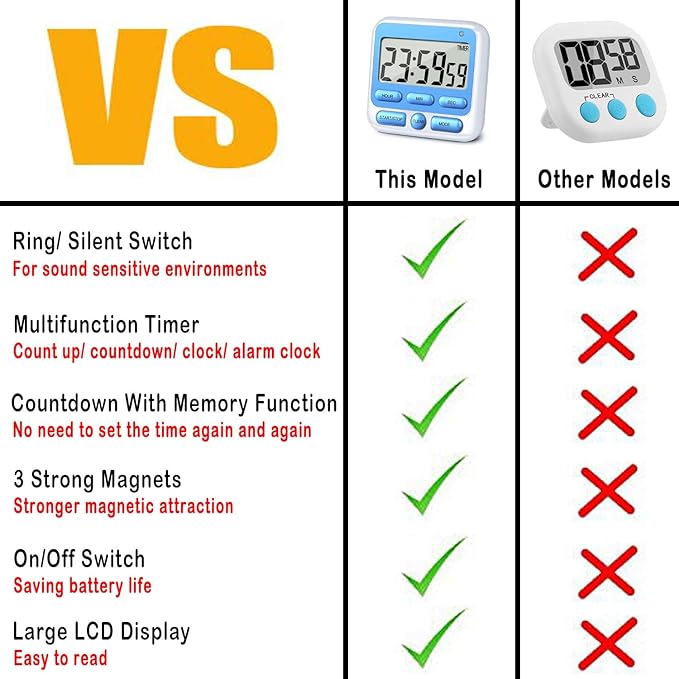 - Silent Mode & Ring Mode: Available for More Situations, We all dread the situation where our timer rings in the middle of a meeting, class or sound sensitive environments, mute & flash mode is the solution to that problem
