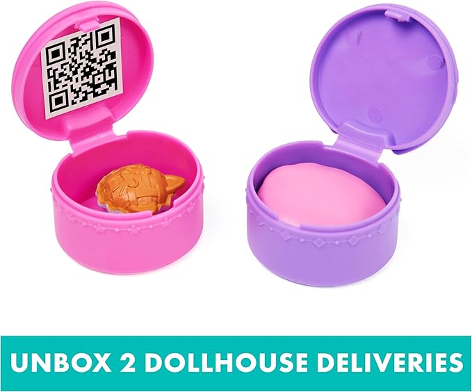 - 2 DOLLHOUSE DELIVERIES, 2 SURPRISE ACCESSORIES: Discover 3 accessories – a tray of cupcakes, plus 2 more in the Dollhouse Deliveries – unbox them to find a pie and a chef’s hat that Cakey Cat can wear