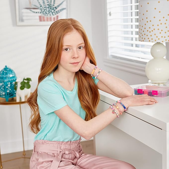 Make It Real - Heishi Beads with Storage Case - Jewelry & Charm Bracelet Making Kit with Storage Case - Friendship Bracelet Set with Beads, Charms & Thread - Arts & Crafts Bead Kit for Girls