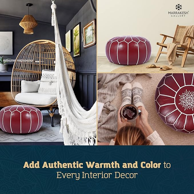 - Add Authentic Arabic Style, Coziness, and Color - Spruce up the space with a leather ottoman pouf designed to hold 10 - 12lbs., that adds some boho chic charm to the living room decor. It's the perfect furniture addition for cozying up with a book, as a foot rest, or an ottoman cover
