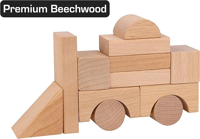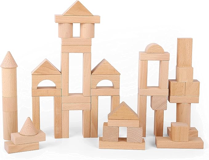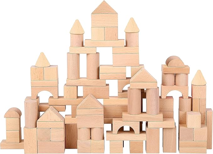 - ✔ Hand-Crafted Quality Wood - 100 pcs traditionally styled hand-crafted natural beechwood wooden blocks. Building blocks for toddlers 3-5 with a storage bucket. Wood blocks for kids are a good selection of Montessori toys. Classic wooden building blocks for kids ages 4-8 boys and girls.