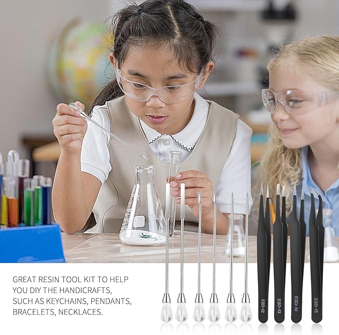- [11 Pcs Resin Tools]: This resin tool kit includes 2 pcs stirring bar, 2 pcs muddler poke needles, 2 pcs resin spoons, 4 pcs resin tweezers and 1 pc transfer pipette. The resin craft tools set is totally enough for your daily needs and use. They will be your practical assistants in DIY resin art.