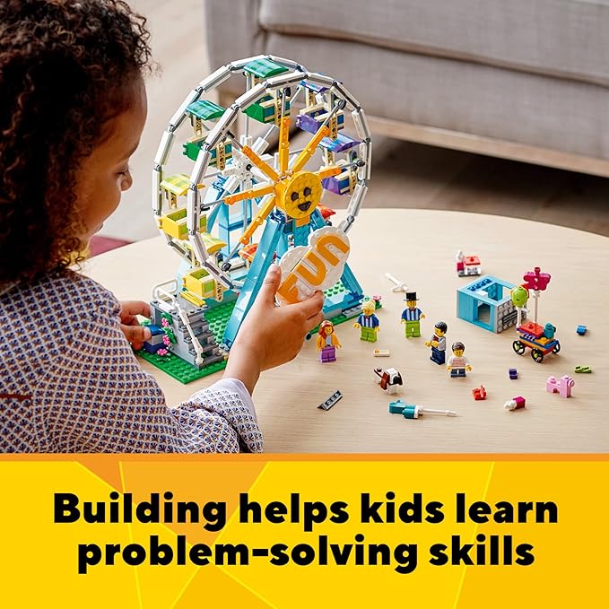 - The LEGO Creator 3in1 Ferris Wheel (31119) amusement park toy set jump-starts kids’ creativity with 3 models in 1 – a Ferris Wheel, bumper car ride and swing boat ride