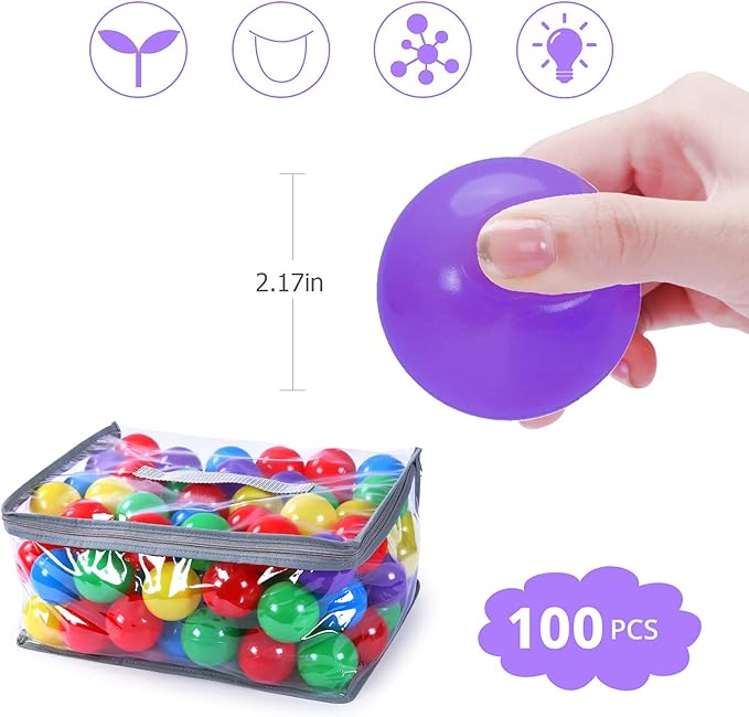 - PACKING :100pcs. There is no need to worry about where the ball should be placed after children play,and baby also can bring out to play with the packing.