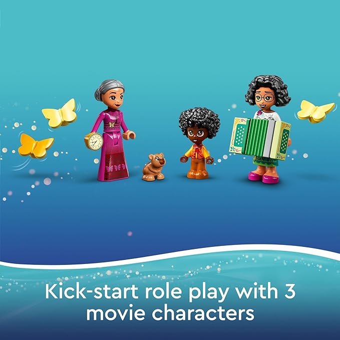 - Comes with 2 LEGO Disney’s Abuela & Mirabel mini doll figures and Antonio micro doll figure, plus capybara and butterfly LEGO figures