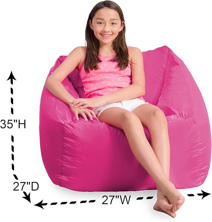 Posh Creations Coronado Bean Bag Boys and Girls Large Chair for Kids, for Gaming and Playrooms, Soft Nylon-Pink