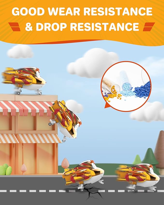 - Drop-resistant and Portable - The strong impact resistance of Super Wings toys make it durable and avoid being destroyed by kids during play. This Superwings Golden Boy is convenient for children to play indoors and outdoors. Not matter you change into the Super Wings transforming planes or the Super Wings transforming robot Golden Boy, it's portable for your kids to keep it play. This Superwings toy is easy to store as a whole.