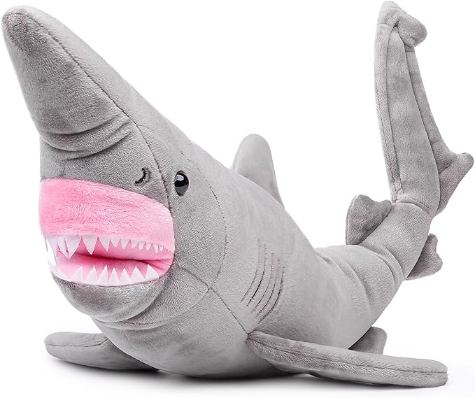 - SUPER SQUISHY SHARK PLUSH: Our lifelike Grey Shark plush imitates real marine animals. The adorable face and squeezable body of Grey Shark are made from premium cloth and filler. its the grey fur is smooth and soft, white transparent sharp teeth Bright, the overall shape design is realistic, and the face design is unique, very realistic.