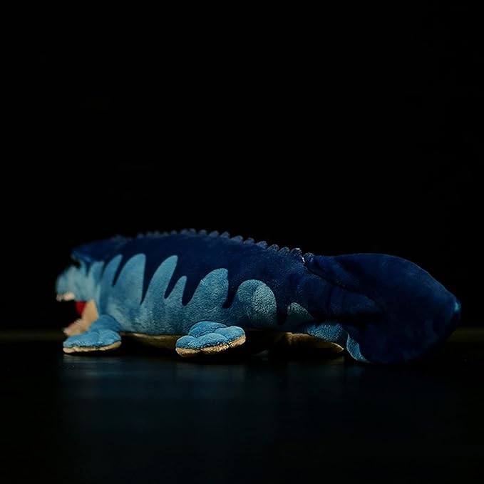 - REALISTIC DINOSAUR PLUSH TOY: This is a lifelike blue Long Mosasaurus Simulation Model toy, the details are realistic. The adorable face and squeezable body of our Mosasaurus plush are made from premium cloth and filler. its the light blue fur is smooth and soft, The blue back stripe is transparent, the long and large tail design, the overall shape design is realistic, and the face design is unique, very realistic.