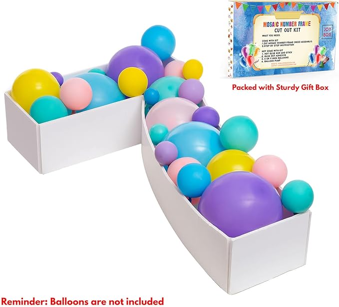 - PRE-CUT KITS FOR INSTANT GLAM: Our mosaic balloon frame is designed for quick and hassle-free assembly. Just grab your glue gun, follow the easy instructions (included), and witness the magic unfold in your celebration with a Joybox Design balloon number frame.