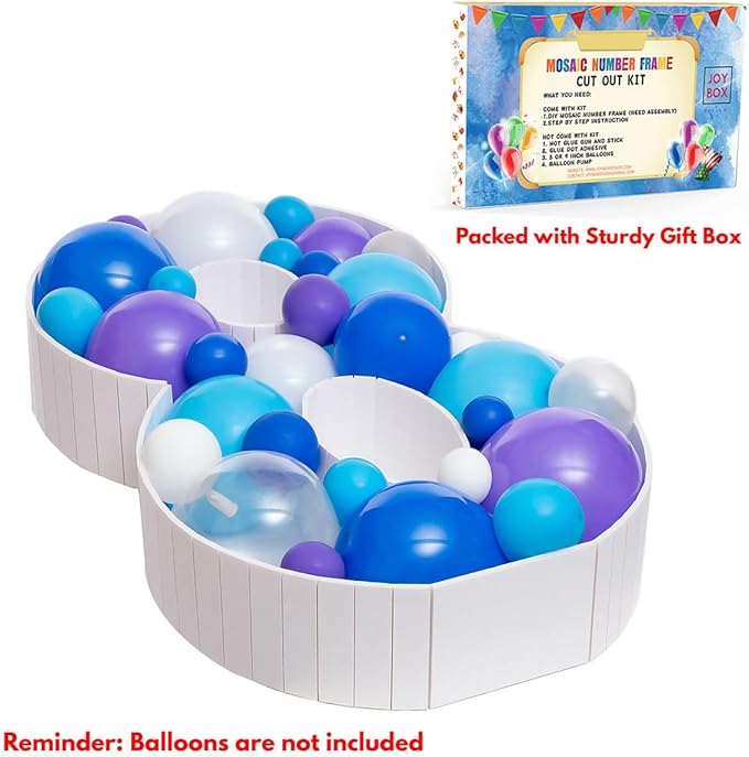 - PRE-CUT KITS FOR INSTANT GLAM: Our mosaic balloon frame is designed for quick and hassle-free assembly. Just grab your glue gun, follow the easy instructions (included), and witness the magic unfold in your celebration with a Joybox Design balloon number frame.