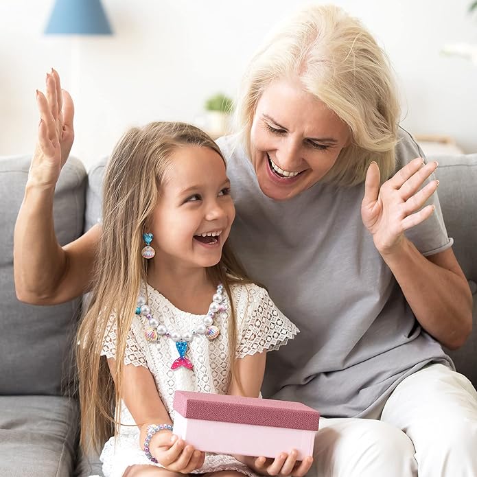 Jadive Mermaid Jewelry for Girls, Kids Mermaid Necklace Bracelet Ring Earrings Set Jewelry Gifts for Kids Toddler Pretend Play Christmas Dress up Party Decorations