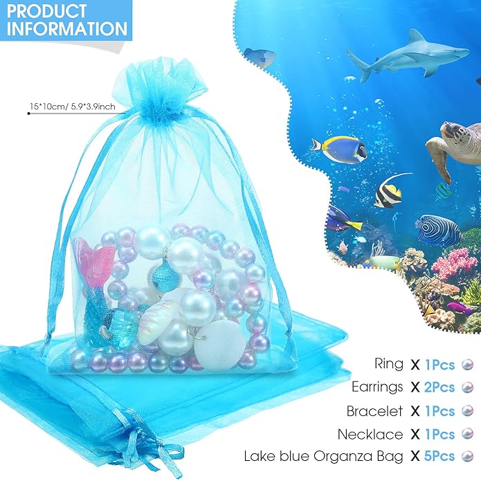 - Product information: you will receive 1 set of mermaid necklace bracelet set, included 1 piece of shell bracelet, 1 piece of ring, 1 piece of mermaid tail necklace with bells, 1 pair of earrings and 5 pieces of organza bags, such a beautiful set will match your girls very well, making them look more adorable at parties