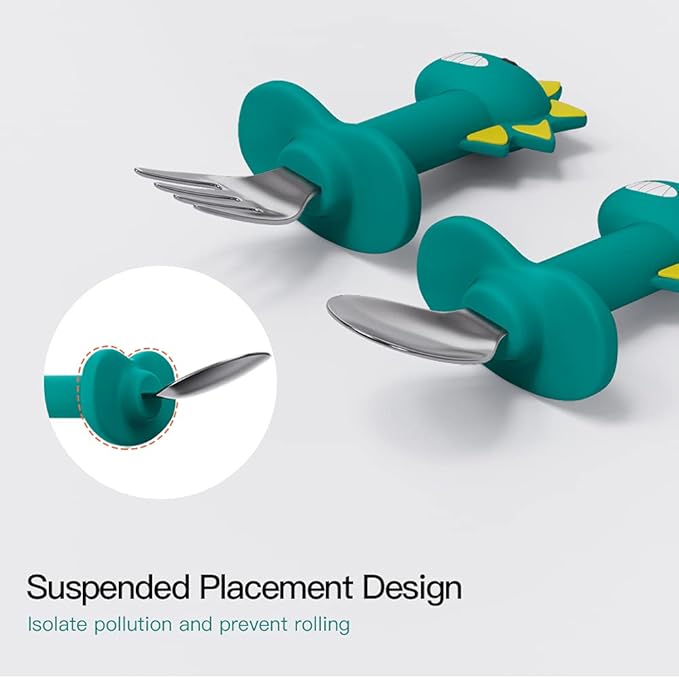 - ERGONOMIC DESIGN – The Cutlery's Ergonomic, wide handle is Covered by Silcone Soft glue, the material is soft and Non-slip which makes it Easy for little hands to grab and Manipulate, Assists Easily in Picking up Food. Ready To Feed with ease!