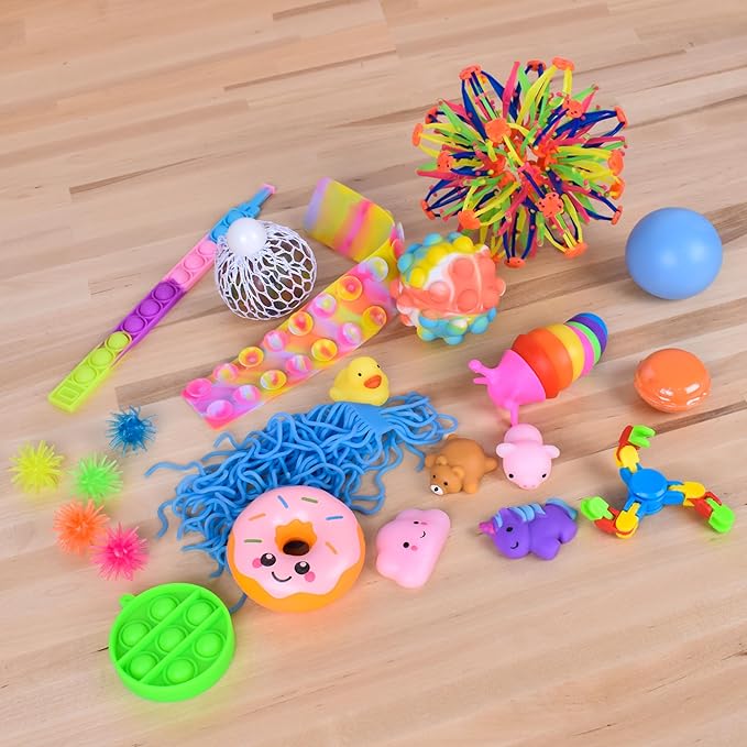 - RELAX, FOCUS, PASS TIME : Squeeze, stretch, flip, pinch, click and watch these toys to help relieve stress. Every toy has a unique feature to help with different moods and supports kids with ADHD, anxiety, sensory disorders or autism.