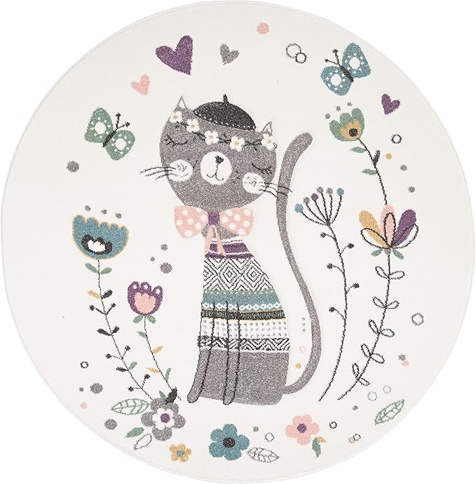 SAFAVIEH Carousel Kids Collection 3' Round Ivory/Pink CRK187A Parisian Floral Cat Non-Shedding Playroom Nursery Bedroom Area Rug