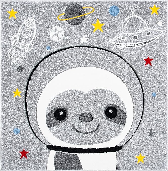 SAFAVIEH Carousel Kids Collection Area Rug - 4' Square, Grey & Ivory, Non-Shedding & Easy Care, Ideal for High Traffic Areas for Boys & Girls in Playroom, Nursery, Bedroom (CRK140F)