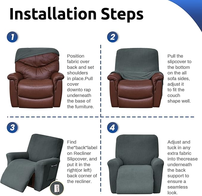 - Excellent design:Our recliner cover is a piece of installation; in the aspect of installation is more inclined to simple; attached to the whole sofa; Please follow our installation steps about 5 minutes can be installed successfully