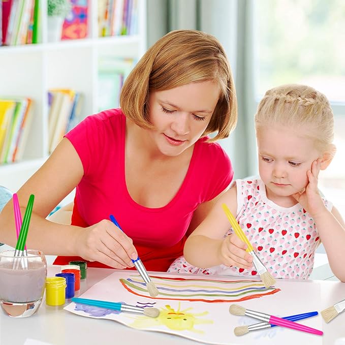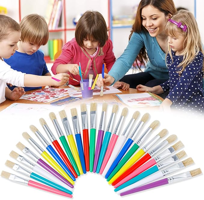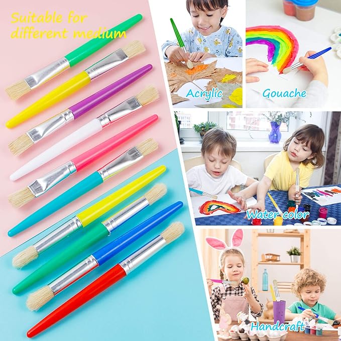 - All-purpose Preschool Paint Brushes:Total 48pcs paint brushes, a nice combination of round and flat paint brushes for kids, suitable for use with a wide range of paint types like washable paint, acrylic, oil-based and water-based paints and make a good choice for home and classroom use