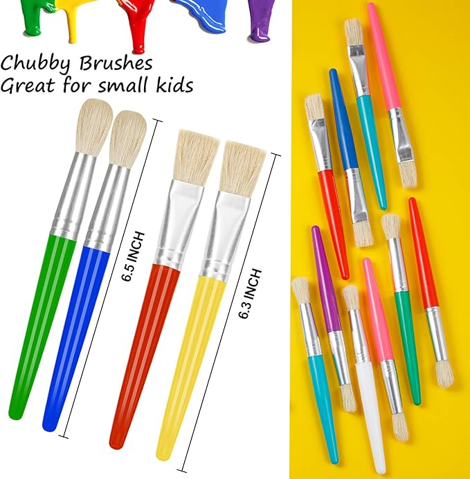 - Great for Little Hands:Large chubby paint brushes come in 8 vibrant and bright colors: red, yellow, blue and green. Each colorful toddler paint brush measures 6.5 inches in length, easy to grip and control for little hands