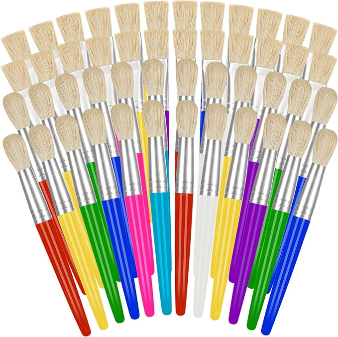 YGAOHF 48 Pack Paint Brushes for Kids - Kids Paint Brushes with Bristle, Big Washable Chubby Toddler Paint Brushes, Easy to Clean Round Flat Brushes for Acrylic Oil Watercolor Washable Paint