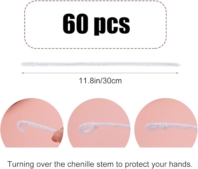 - YOU WILL RECEIVE: White Pipe cleaners 60 pcs, which easy to bend and mold to create designs, soft, and ideal for all craft projects. Create your unique Christmas holiday decoration wreath or animal craft project, and your cat's favorite funny cat tool by this pipe cleaners for crafts